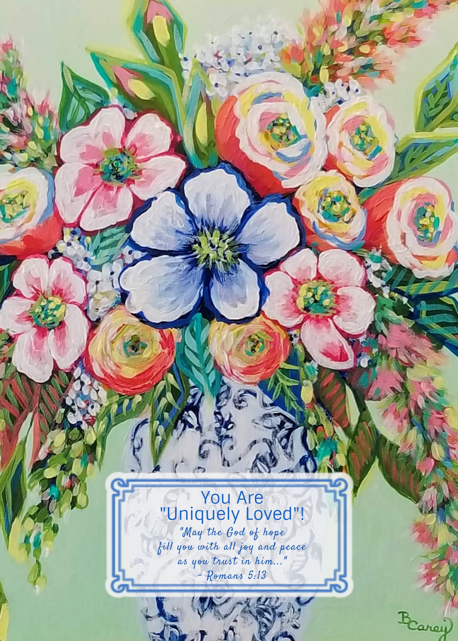 This freebie is my little thank you for visiting my website to check out my original creations. It is designed for you to print as a 5x7 that you can insert into a ready-made frame for your desk, kitchen, or wherever you would like to add some color and joy and be reminded of how much you are loved! Or you can print this and give it to a friend to remind them how much they are loved! (I would really appreciate it if you would not share this file with anyone. But of course, please do send your friends and family to my site to download their own copy. Here's the link to my freebies: https://www.beckycareyart.com/blog/categories/freebies Thanks so much!)